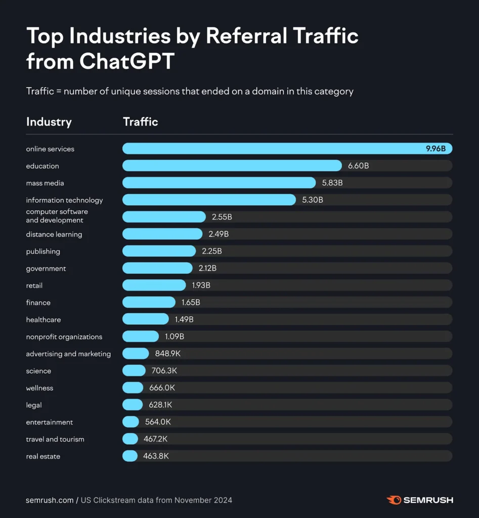 ChatGPT ist informativer – die Nutzer neigen zu tiefgründigen Fragen, Verständnis und Kontext. Google dominiert bei Navigationsanfragen – Menschen versuchen oft nur, eine bestimmte Website oder einen bestimmten Dienst zu erreichen.